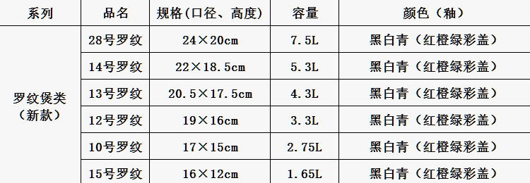 > 罗纹煲系列(新款)