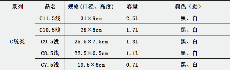具有优秀的耐急热急冷性能,可直接在煤气、液化气、微波炉、电陶炉等各种热源上煎、炒、煮、炸等各种食物,使用寿命是普通陶煲的数十倍,是理想的餐馆炊具。使用时不宜干烧时间过长。